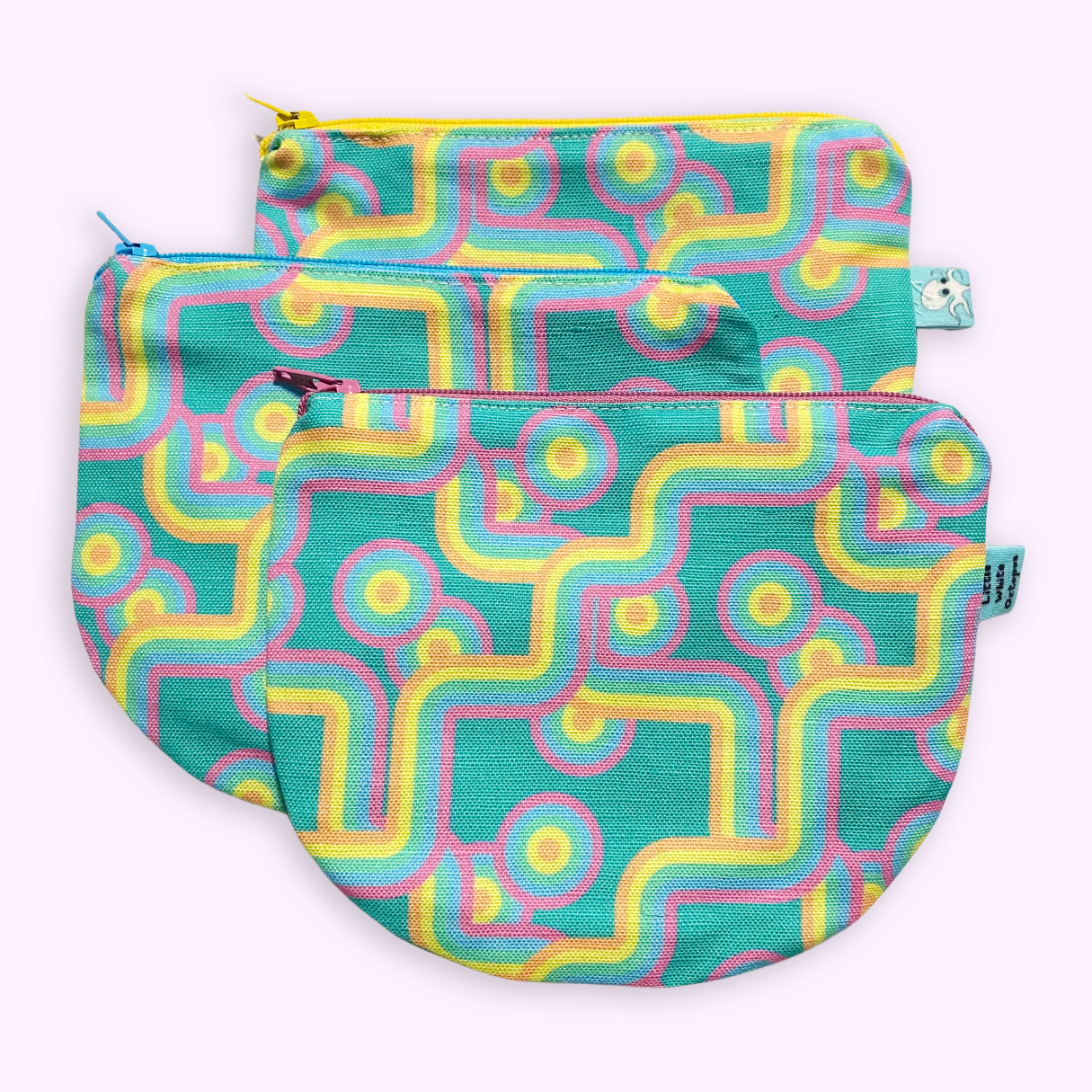 Pattern placement will vary. Each pouch is fully lined with a contrast fabric for extra strength (lining prints may vary). The zipper color is random!
