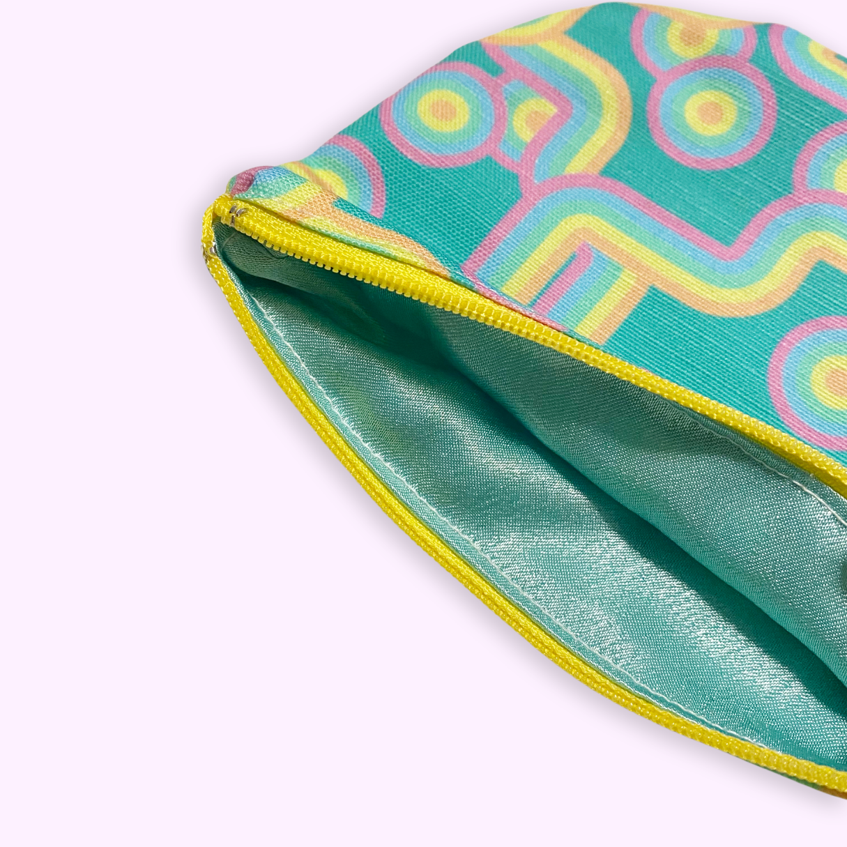 Rainbow stripes and circles decorate this cute pouch made of in-house designed cotton-canvas fabric. Great as a change purse, sewing kit or to hold other small necessities.