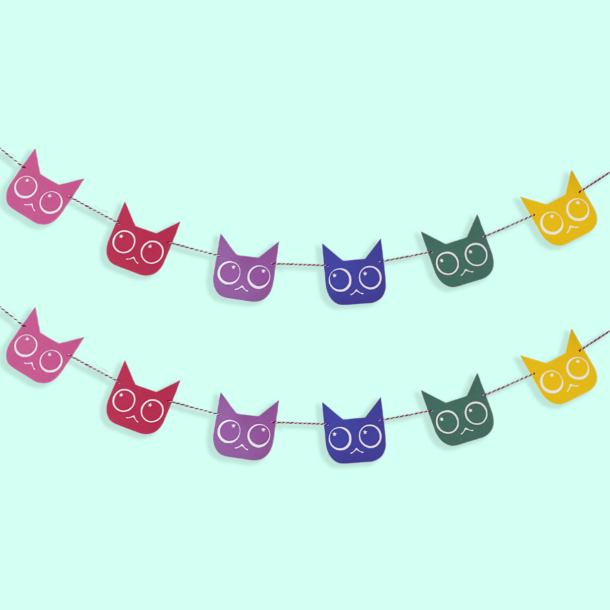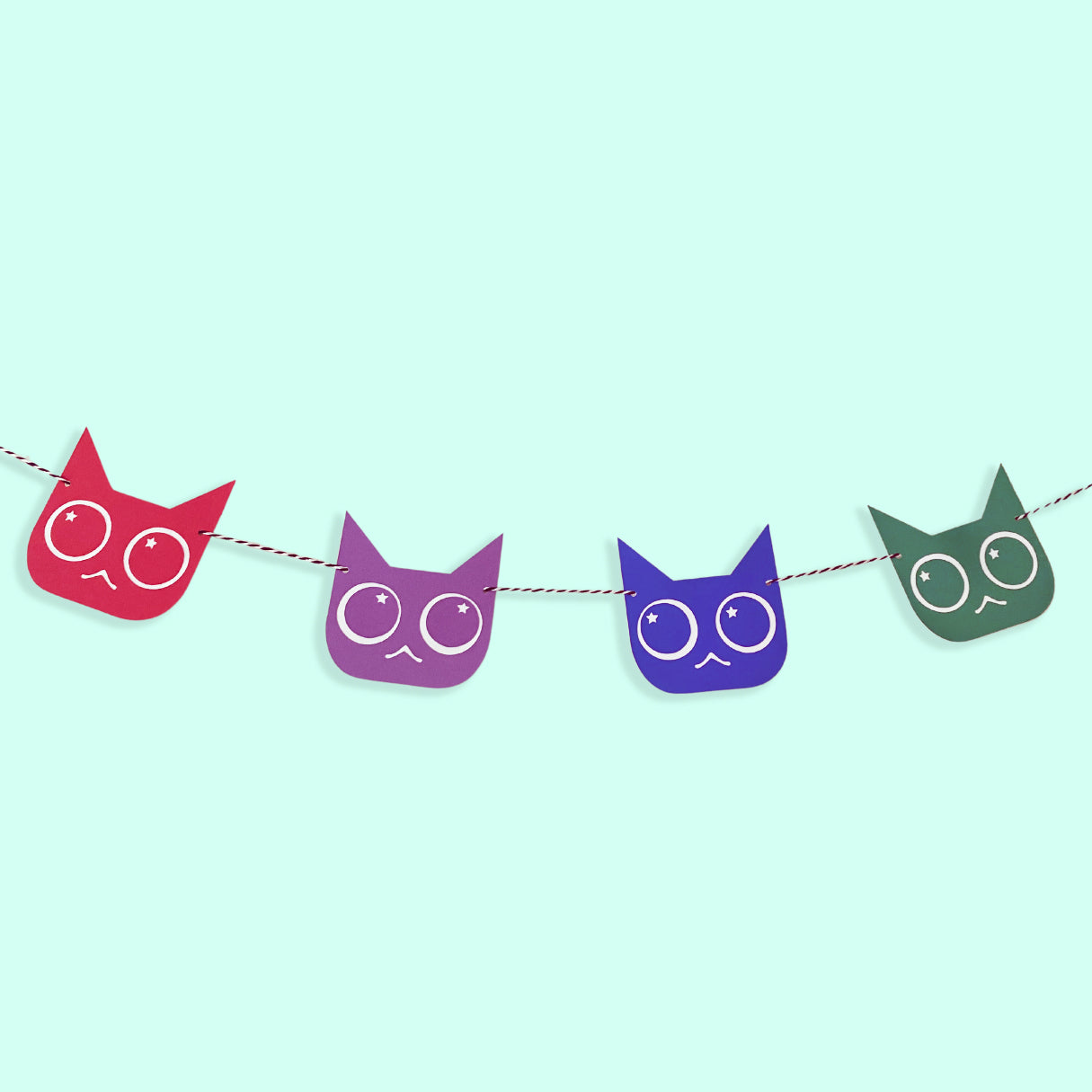 Made in-house with cut cardstock. Strung on black and white baker's twine.